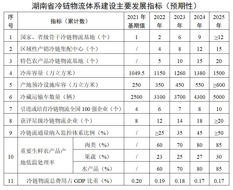 湖南省冷链物流体系建设行动方案(2022-2025年)