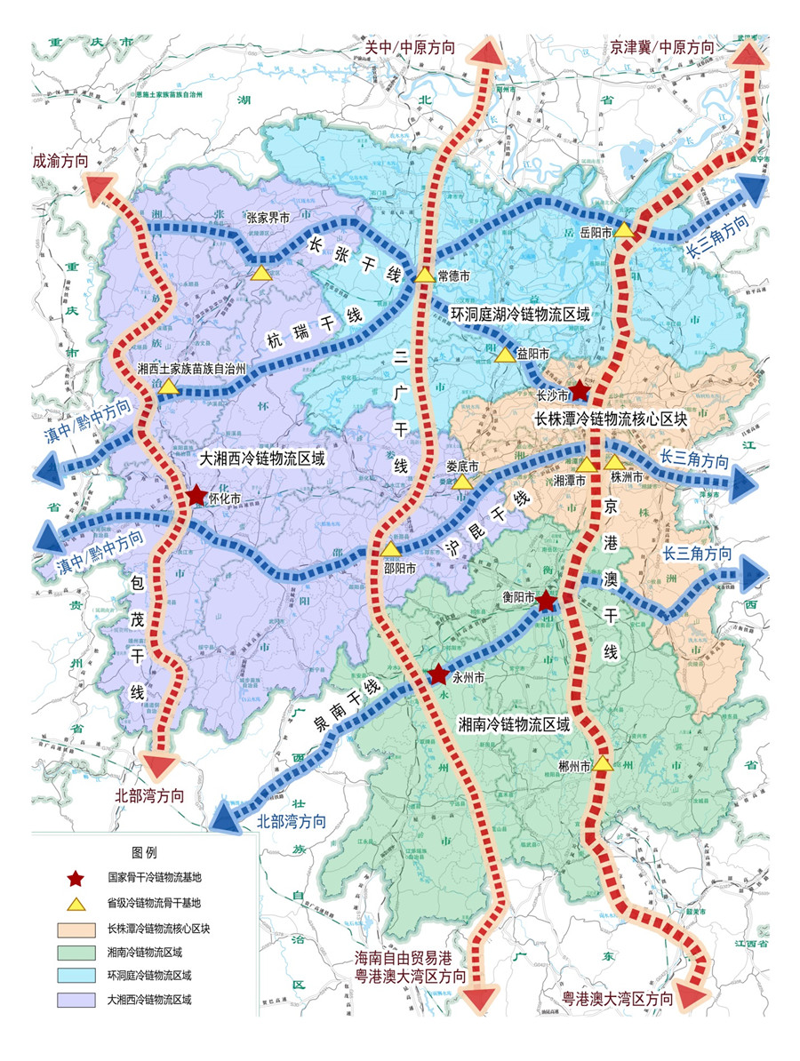 湖南省“三纵四横”冷链物流骨干通道示意图