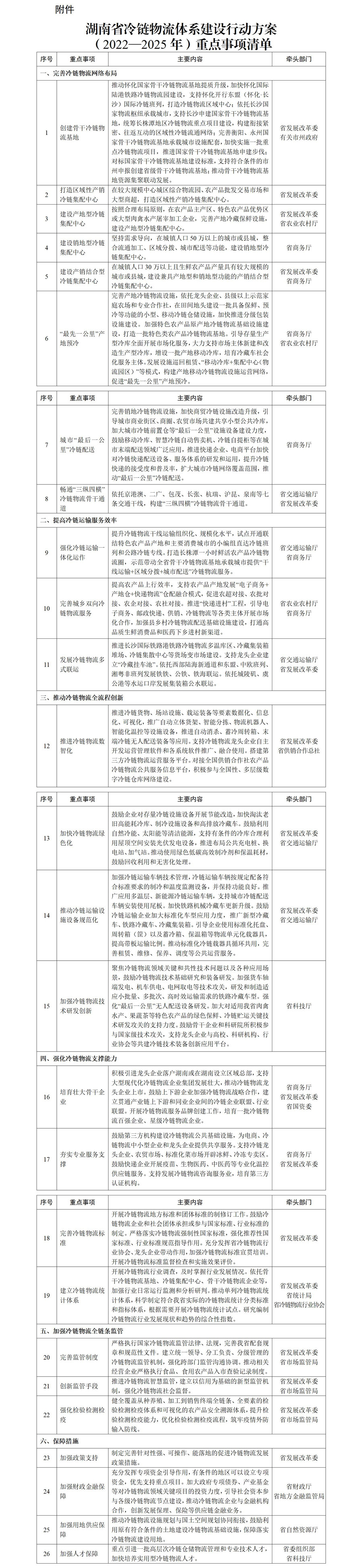 附件:湖南省冷链物流体系建设行动方案(2022—2025年)重点事项清单